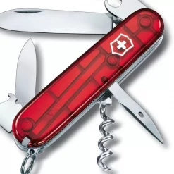 Parmi les 12 fonctionnalités du couteau suisse Spartan Victorinox, on trouve notamment deux lames : une grande et une petite. On trouve également un ouvre-boîte universel, un décapsuleur et un tire-bouchon. Deux tournevis de tailles différentes ainsi qu’un plioir de fil électrique, un anneau, un cure-dents, des pincettes et un poinçon alésoir avec chas d’aiguille font également partie du lot. En résumé, acheter un couteau suisse Spartan de la marque Victorinox en coloris translucide, c’est opter pour un modèle très actuel et reprenant toutes les fonctions de base du couteau d’officier suisse d’origine. De même qu’il a dépanné nombre de soldats de l’armée suisse, ce couteau vous dépannera avec la même efficacité, que vous soyez en trekking, en bivouac, en déplacement, au bureau ou à votre domicile.